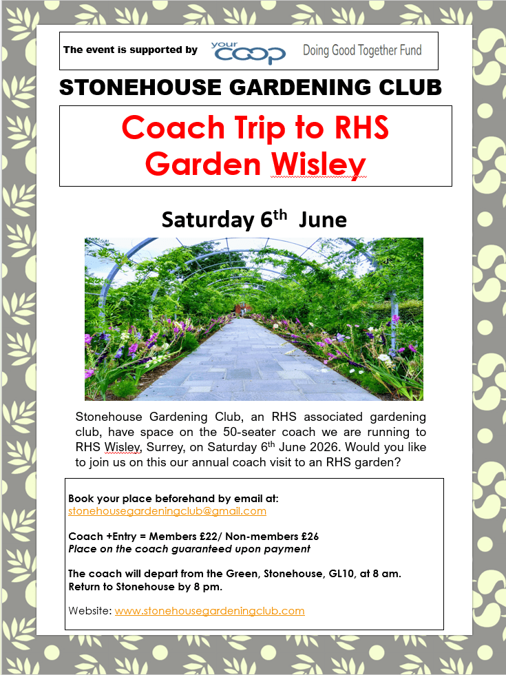 Stonehouse Gardening Club provides individuals with opportunities to develop skills, network with like-minded people, and access gardening resources. We are an RHS affiliated society, and sponsored by The Midlands Cooperative Society Doing Good Together.