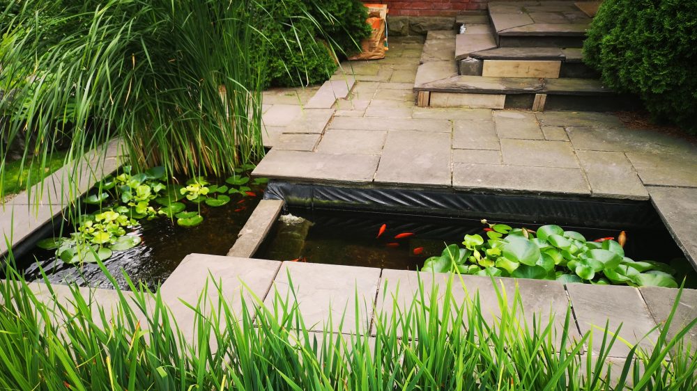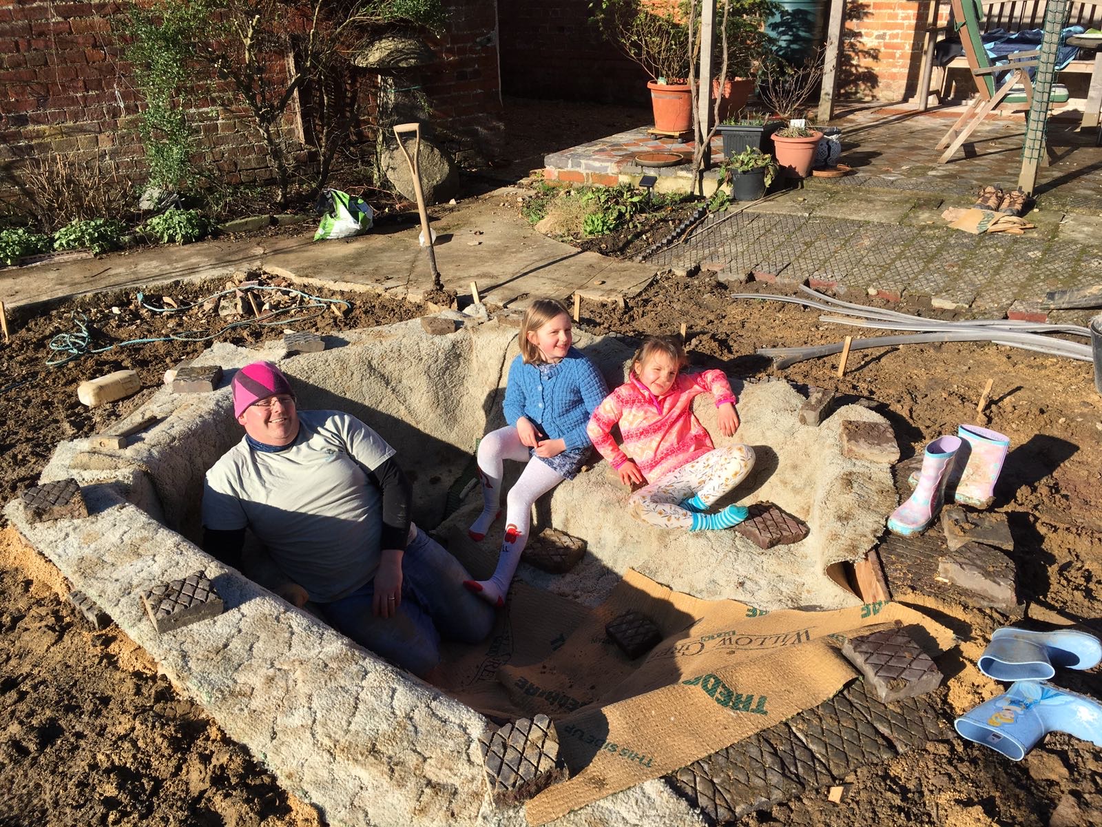 Concerns about safety can usually be mitigated with training and guards if necessary and the pond should be in full sunlight away from trees. Water features can be in the shade. Any electrical work for pumps or lights should have a circuit breaker fitted by a qualified electrician. Getting the site right is key to success, most ponds have a flexible liner (Butyl, EPDM or PVC depending on your budget), and the size needs to take account of width/length plus 2 x depth plus 20cm. A depth of 45 cm is needed to avoid fish freezing in winter.